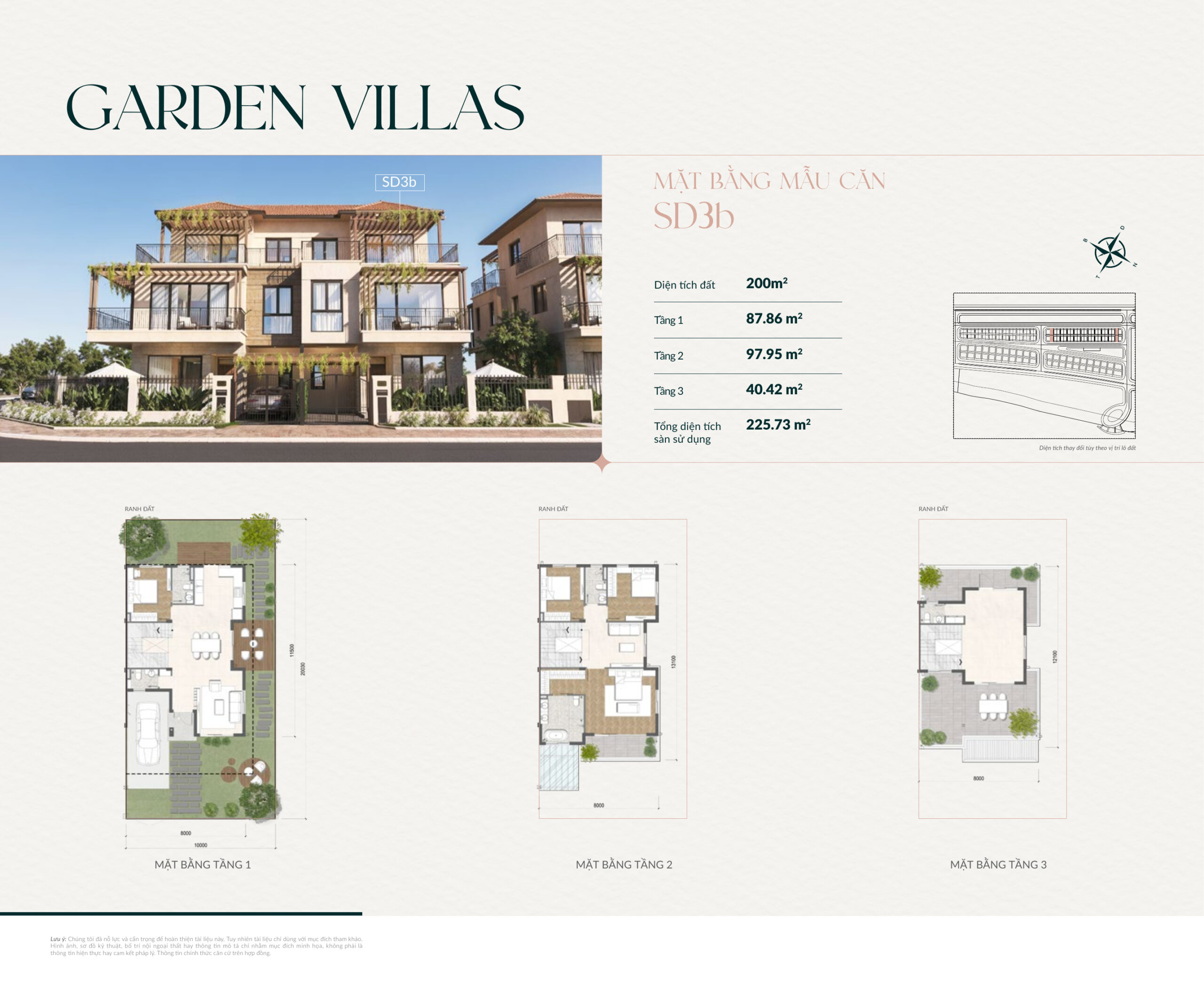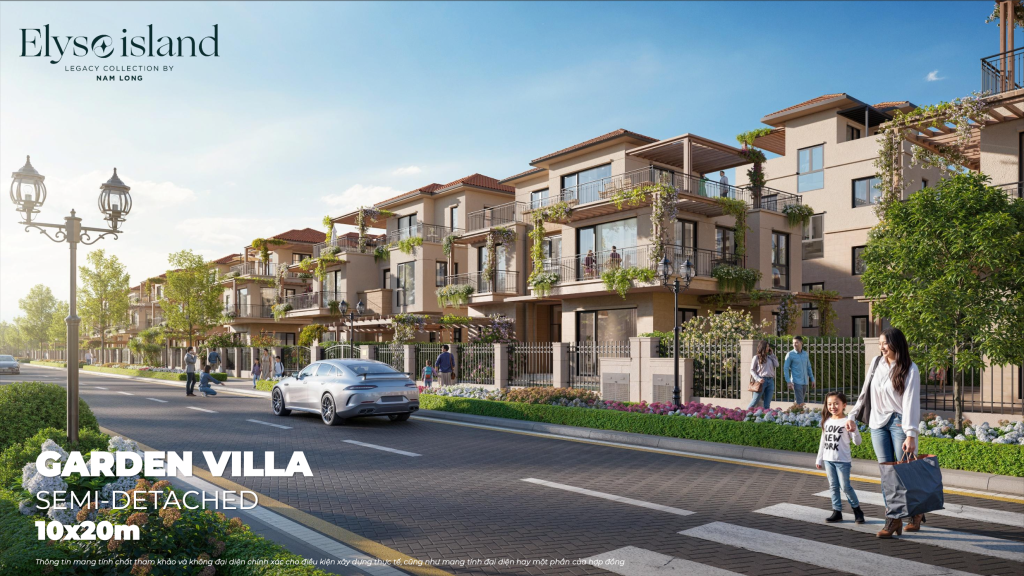 • Garden Villa (Biệt thự vườn Elyse): 58 căn – diện tích 20x20m2, 3 tầng, mật độ xây dựng 30%.