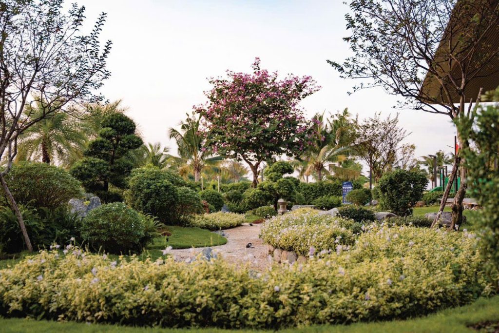 Kiến trúc cảnh quan từ Tâm & Tầm : Thiết kế theo nguyên tác “vị nhân sinh” mật độ xây dựng thấp, khoảng xanh cao, kiến trúc thoáng- mở. Giao thoa giữa cảnh quan, tiện ích, thiên nhiên và con người.